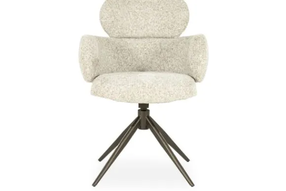 Het metalen onderstel met draaifunctie geeft de stoel een eigentijdse look en extra gebruiksgemak. Eetkamerstoel Darcio combineert comfort en karakter op een stijlvolle manier.