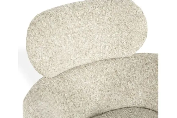 De stoel is bekleed met een hoogwaardige stof in een warme, beige tint die moeiteloos past bij verschillende interieurs.