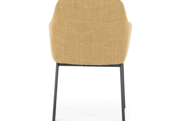 Eetkamerstoel Paul mosterd Linea 95888 is van het merk Eleonora. De rugleuning van deze stoel loopt vloeiend over in de armleuningen. De armleuningen zijn smal en nemen niet veel plek in beslag, maar bieden voldoende comfort.