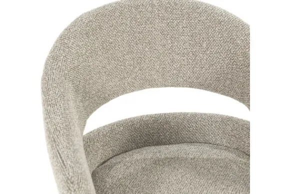 Eetkamerstoel Hailey Taupe 96457 van het merk Eleonora is een moderne stoel met comfortabele vorm en bekleed met de zachte stof Eira taupe. De afgeronde rugleuning met open zijkanten biedt fijne ondersteuning en een luchtige uitstraling. Het stevige metalen onderstel met spinpoot geeft de stoel een strakke en stabiele basis.