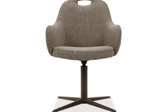 Eetkamerstoel Cronos is samen te stellen met vier verschillende onderstellen van metaal of hout. Afhankelijk van het gekozen onderstel is de stoel 180 graden of 360 graden draaibaar. Daarnaast kies je uit verschillende pootkleuren. Bij metalen poten kleurt het handvat automatisch mee met het onderstel. Bij houten poten heb je keuze uit drie verschillende kleuren voor het handvat.