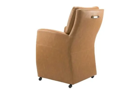 Deze stoel wordt standaard uitgevoerd met parketwieltjes en met handgreep op de rugleuning.