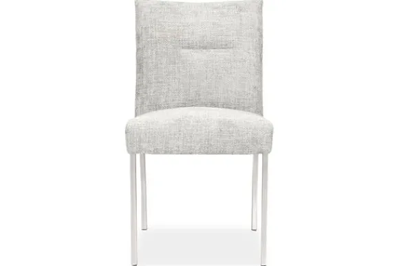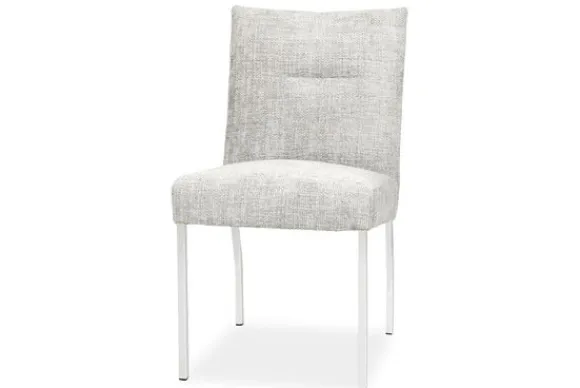 Eetkamerstoel Carina van het merk France is een comfortabele en stijlvolle stoel met een zachte zitting en rugleuning. De subtiele structuurstof geeft een warme uitstraling, terwijl het ranke metalen onderstel zorgt voor een moderne touch.