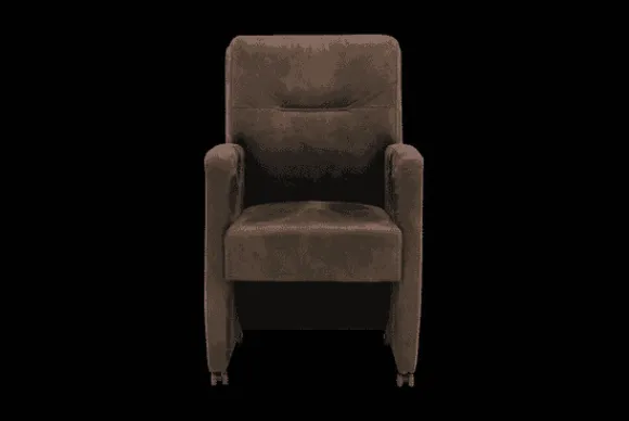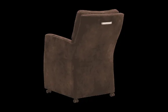 Deze stoel wordt standaard uitgevoerd met parketwieltjes en met handgreep op de rugleuning.