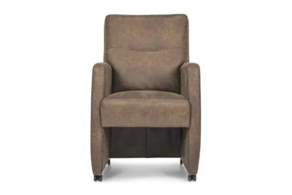 Deze stoel wordt standaard uitgevoerd met parketwieltjes en zonder handgreep op de rugleuning.