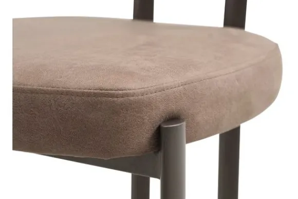 Eetkamerstoel Ravon van het merk Kaizen Design combineert modern comfort met een stijlvolle uitstraling. De zitting is uitgevoerd in de zachte kleur Bull Liver en rust op een stevige metalen poot in Anodic Brown.