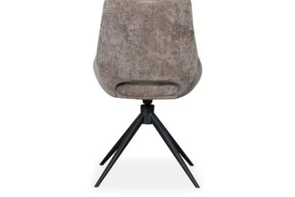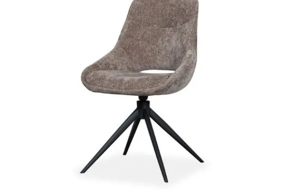 De gebogen rugleuning biedt fijne ondersteuning tijdens lange diners of gezellige avonden aan tafel. De brede zitting zit comfortabel en dankzij de draaifunctie met auto return is de stoel praktisch in gebruik. De slanke metalen poten zorgen voor een stabiele basis en geven de stoel een moderne, luchtige uitstraling.