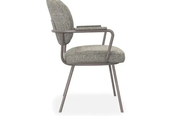 Het frame is afgestemd op de stoffering en zorgt voor een rustige ton sur ton uitstraling. Deze afwerking geeft de stoel een verzorgd en evenwichtig geheel aan de eettafel.