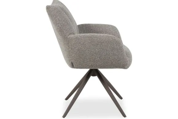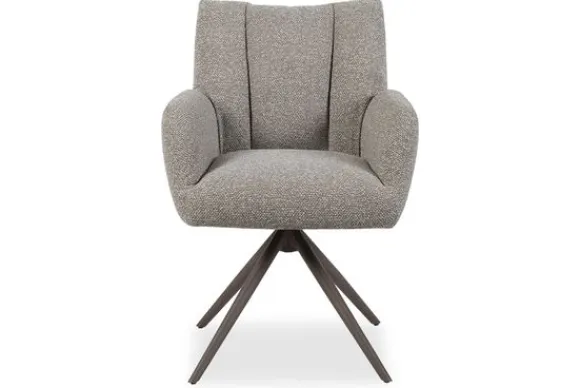 Eetkamerstoel Padua XY-91.009 van het merk LABEL51 valt op door zijn stijlvolle en zachte vorm. De draaibare spinpoot, gecombineerd met bouclé bekleding in de kleur Mushroom, geven de stoel een warme en hedendaagse uitstraling, terwijl de elegante lijnen van de rug en armleuningen zorgen voor een comfortabele en uitnodigende zit. De verticale stiknaden in de rugleuning brengen een luxe uitstraling die op een subtiele manier diepte en karakter toevoegt.