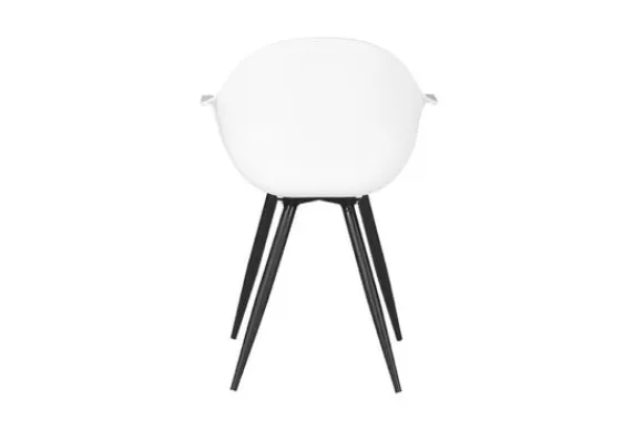 Eetkamerstoel Luca, uitgevoerd in wit polypropyleen heeft een zeer luxe en comfortabele kuip voorzien van elegante rondingen en armleuningen. Het materiaal is duurzaam en zeer gebruiksvriendelijk. Tevens is Luca in het bezit van licht uitlopende poten uitgevoerd in zwart metaal waardoor de stoel stevig op de grond staat en ook nog eens een leuke speelse touch krijgt.