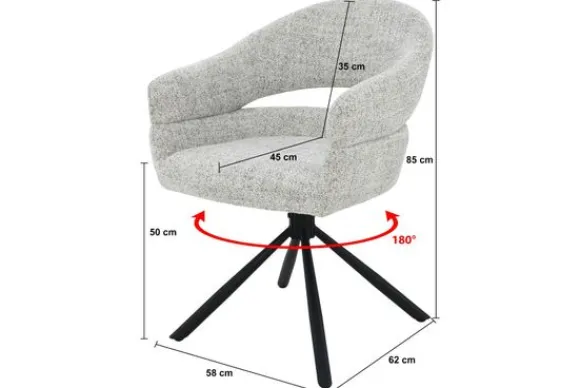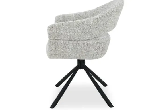 Het zwarte metalen onderstel met taps toelopende poten geeft de stoel een moderne uitstraling met een subtiele industriële toets. Dankzij het 180 graden draaimechanisme biedt Linn extra gebruiksgemak, perfect voor dynamische gesprekken aan tafel of flexibel gebruik in een open eetkameropstelling.