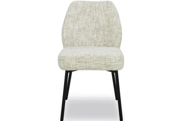 Eetkamerstoel Tess van het merk Livingfurn is een stijlvolle verschijning in een zachte, neutrale tint die direct rust en harmonie uitstraalt. De bekleding heeft een verfijnde, licht gemĂȘleerde structuur met een speelse kruisdraad, wat zorgt voor een subtiel textuurspel dat zowel modern als tijdloos oogt.