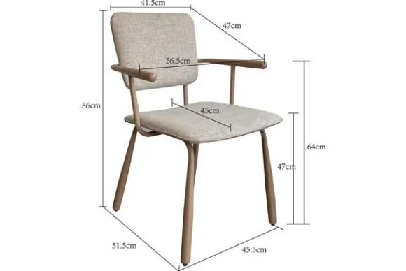 Eetkamerstoel Finn van het merk Livingfurn straalt verfijnd design uit met zijn slanke, chique beige stalen onderstel en armleuningen. De lichte stof zorgt voor een fris moderne geheel die perfect past in elke eetkamer. Comfort en stijl worden moeiteloos gecombineerd in deze elegante stoel.