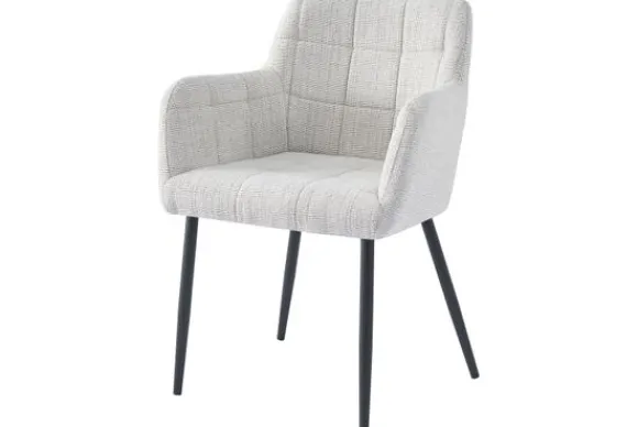 Eetkamerstoel Bronco Greige van het merk Livingfurn is verkrijgbaar in verschillende kleuren. Deze comfortabele kuipstoel heeft armleuningen voor extra zitcomfort en poten van gecoat staal.