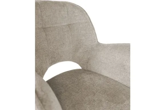 Eetkamerstoel Alicia ALI-DC-0035-ARM-3 uit de Unique Collection van het merk MySons is een moderne en comfortabele draaistoel met een zachte, beige bekleding die meteen uitnodigt om plaats te nemen. De fijne textuur van de stof voelt aangenaam aan en geeft de stoel een knusse, stijlvolle uitstraling. Dankzij de hoge armleuningen en licht gebogen rugleuning zit je stevig en ontspannen, perfect voor lange avonden aan tafel.
