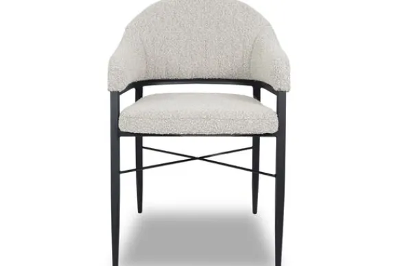 Eetkamerstoel Okke pearl van het merk Olijk is verkrijgbaar in de stof Touch in de kleuren; Mouse, Pearl en Toffee. De eetstoel heeft verticale stiksels in de rugleuning lopen wat voor een mooi ontwerp zorgt. De rugleuning loopt naadloos over in de armleuning, deze ronding zorgt voor een fijne ondersteuning van de rug en creëert een mooi geheel. De zwarte, metalen poten maken deze stoel helemaal af!