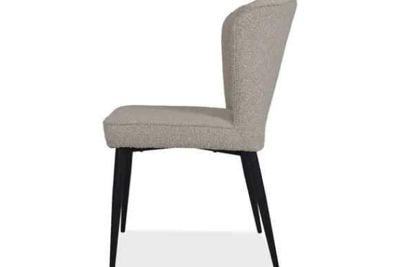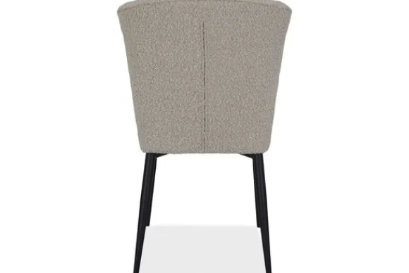 Eetkamerstoel Trije Toffee van het merk Olijk is verkrijgbaar in de kleuren; Mouse, Pearl, Rhino en Toffee. Deze stoel is bekleed met de stof Touch Toffee. De eetstoel heeft verticale stiksels in de rugleuning lopen wat voor een mooi ontwerp zorgt. De rugleuning loopt naar buiten af wat voor een comfortabele zit en goede ondersteuning van de rug zorgt. De zwarte, metalen poten zorgen voor een modern randje.