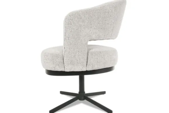 De zitvulling is uitgevoerd met koudschuim en pocketvering, wat zorgt voor veerkrachtig zitcomfort en langdurige ondersteuning. De stalen draaipoot maakt de stoel 360 graden draaibaar en is voorzien van een autoreturn functie, waardoor de zitting na gebruik automatisch terugdraait naar de oorspronkelijke stand, praktisch én strak in uitstraling. Onder de zitting loopt een houten rand, standaard uitgevoerd in zwart, maar optioneel verkrijgbaar in verfijnde kleuren zoals beuken, walnoot, wenge en wit.