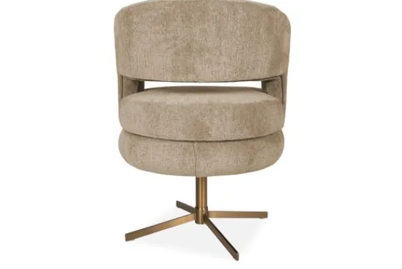 Eetkamerstoel Salute van het merk Opulenza is verkrijgbaar in diverse kleuren en materialen zoals stof, velvet en microleder. De ronde rugleuning met een open detail geeft stijlvolle ondersteuning aan de onderrug, terwijl de brede zitting en diepe zitdiepte zorgen voor een comfortabele, robuuste uitstraling.