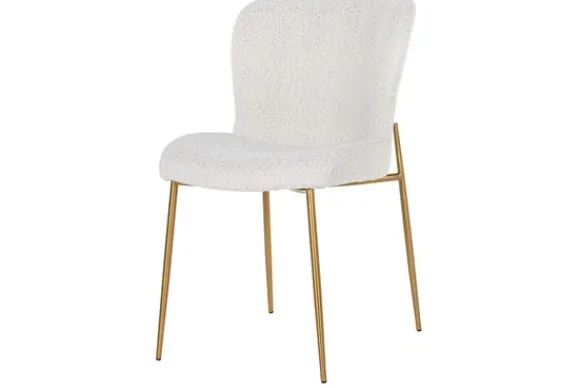 Eetkamerstoel Odessa 210623 White Bouclé van het merk Richmond Interiors heeft een luxueuze uitstraling. De eetkamerstoel is gestoffeerd met Copenhagen 900 Bouclé White en de stoelpoten zijn gemaakt van brass (staal in mat goud). Een leuke eetkamerstoel die jouw eethoek compleet maakt!