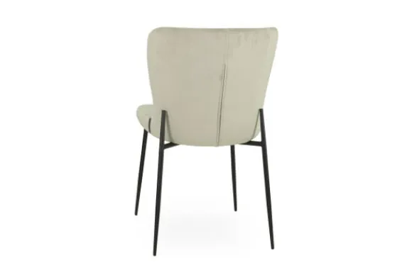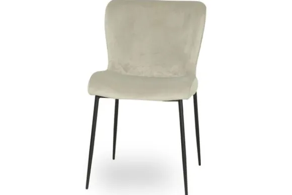 Eetkamerstoel Darby 210833 Khaki Velvet FR van het merk Richmond Interiors is gestoffeerd met FR-Quartz 903 Khaki en heeft zwarte metalen poten. Velvet is makkelijk te reinigen, slijtvast en goed bestendig tegen bijvoorbeeld nagels van huisdieren. Op deze stoel is een brandvertragende stof gebruikt die ervoor zorgt dat de verspreiding van het vuur wordt vertraagd.