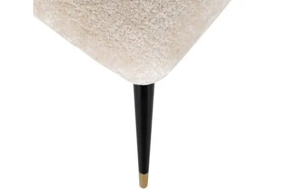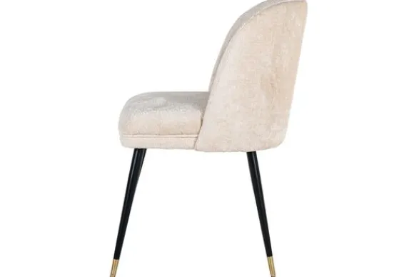 Eetkamerstoel Alicia 210855 White Chenille van het merk Richmond Interiors is gestoffeerd met FR-Bergen 900 white chenille. Op deze stoel is een brandvertragende stof gebruikt die ervoor zorgt dat de verspreiding van het vuur wordt vertraagd. Chenille is makkelijk te reinigen. Verder heeft deze stof een mooie glans en door de vezels ziet de stof er bij elke lichtinval anders uit. Tevens is de stof zeer comfortabel en zacht, wat zorgt voor een chique en warme uitstraling. De poten van deze stoel zijn gemaakt van metaal en hebben gouden details aan de onderkant.