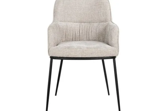 Eetkamerstoel Bella 211915 Natural Renegade van het merk Richmond Interiors is een comfortabele stoel met armleuningen en een zachte zitting. De stoel is gestoffeerd met de stof Renegade 01 Natural. Het onderstel is gemaakt van zwart metaal.