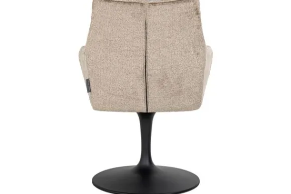 Tevens is de stof zeer comfortabel en zacht, wat zorgt voor een chique en warme uitstraling. De stoel is 360 graden draaibaar. De stoel is voorzien van armleuningen, dit zorgt ervoor dat je comfortabel kunt zitten. De poot heeft een ronde voetplaat en is gemaakt van metaal in de kleur zwart.
