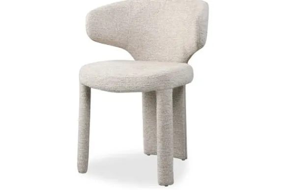 De eetkamerstoel is volledig gestoffeerd in stof Natural Linear en staat stevig op vier poten die naadloos zijn bekleed. De zitting is licht gebogen en biedt prettig zitcomfort tijdens lange diners.