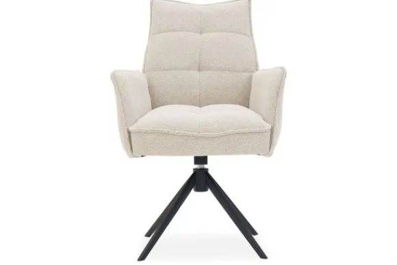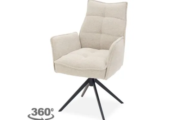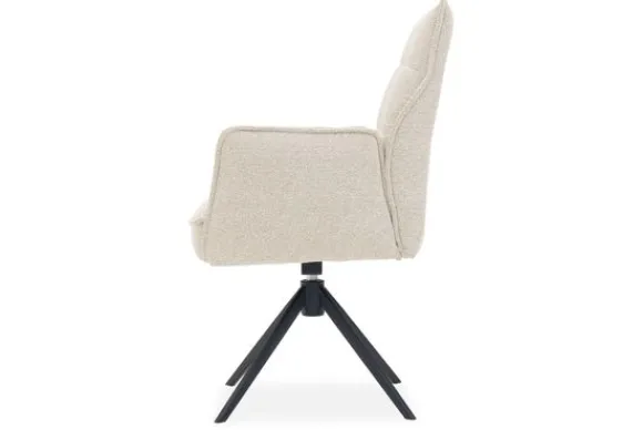 Het stevige, zwart metalen onderstel is niet alleen modern, maar ook functioneel: de zitting is 360 graden draaibaar en voorzien van een handige autoreturn functie, dit betekent dat de stoel automatisch terugdraait naar zijn oorspronkelijke positie zodra je opstaat.