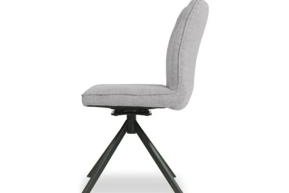 Eetkamerstoel Lotte van het merk Simone Albani is beschikbaar in alle kleuren en in verschillende materiaalsoorten zoals stof, microvezel en rundleder. Deze uitvoering van de Lotte is uitgevoerd zonder armleuningen, maar is ook beschikbaar met armleuningen. De stof is afgewerkt met geknepen naden, in de rugleuning zit één horizontaal stiksel en de stoel is voorzien van een zwart metalen draaipoot. Deze stoel is 180 graden draaibaar en is voorzien van een terugdraaisysteem. Door het terugdraaisysteem kun je de zitting van de stoel draaien en daarna zal deze uit zichzelf weer terug draaien naar het midden.