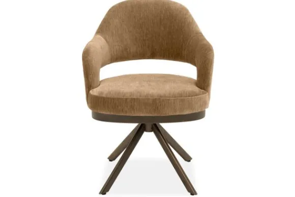 Eetkamerstoel Bisano van het merk Sitsmart heeft een afgeronde zitting met geïntegreerde armleuningen.
