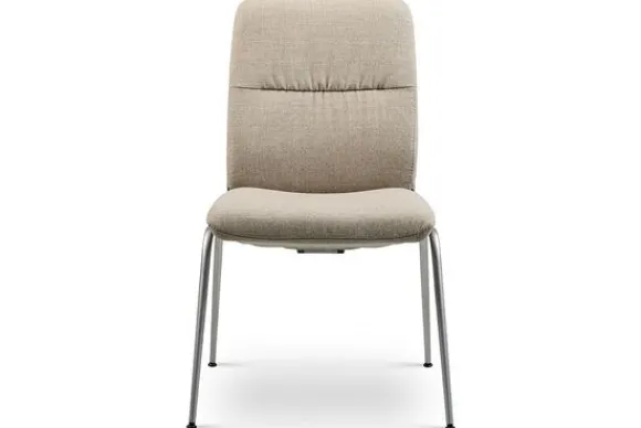 Deze stoel wordt standaard geleverd met metalen poten in de kleur mat chroom, er kan ook voor andere pootkleuren gekozen worden.