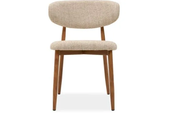 De natural look metalen poten voegen een subtiel contrast toe aan de lichte stof en versterken het natuurlijke karakter van de stoel.