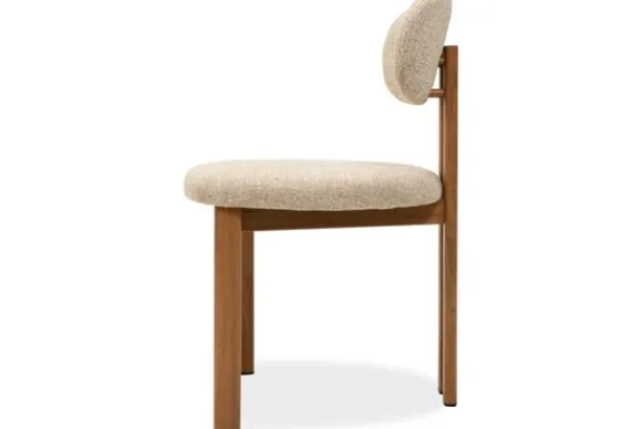 Eetkamerstoel Lynja van het merk Studio Japandi is een moderne stoel met een kalme en natuurlijke uitstraling. De zitting en rugleuning zijn bekleed met stof Field 130.