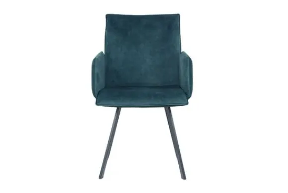 Eetkamerstoel Jussie van het merk Titan Design is beschikbaar in alle kleuren en in verschillende materiaalsoorten zoals stof, velvet en rundleder. De Jussie stoel is beschikbaar in diverse uitvoeringen. Deze Jussie is voorzien van armleuningen en zwart metalen poten zonder wieltjes. Je kunt er ook voor kiezen om de Jussie uit te voeren met wieltjes. Deze stoel heeft een unieke uitstraling dankzij de opening tussen de arm- en rugleuning.