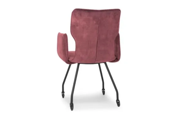 Eetkamerstoel Larson van het merk Titan Design is beschikbaar in alle kleuren en in verschillende materiaalsoorten zoals stof, velvet en rundleder. De Larson stoel is beschikbaar in diverse uitvoeringen. Deze Larson is voorzien van armleuningen en zwart metalen poten met wieltjes. Deze stoel heeft een unieke uitstraling dankzij de opening tussen de arm- en rugleuning.