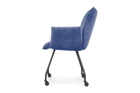 Eetkamerstoel Jussie van het merk Titan Design is beschikbaar in alle kleuren en in verschillende materiaalsoorten zoals stof, velvet en rundleder. De Jussie stoel is beschikbaar in diverse uitvoeringen. Deze Jussie is voorzien van armleuningen en zwart metalen poten met wieltjes. Je kunt er ook voor kiezen om de Jussie uit te voeren zonder wieltjes. Deze stoel heeft een unieke uitstraling dankzij de opening tussen de arm- en rugleuning.