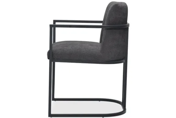 Eetkamerstoel Archi AM 0026 van het merk Tower Living is een stijlvolle mix van kracht en verfijning, waar het grafietkleurige textiel subtiel contrasteert met het strakke, zwarte metalen frame. De open armleuningen en rechte lijnen geven de stoel een moderne, industriële uitstraling, terwijl de zachte bekleding zorgt voor een comfortabel zitgevoel dat uitnodigt tot lange, ontspannen diners.