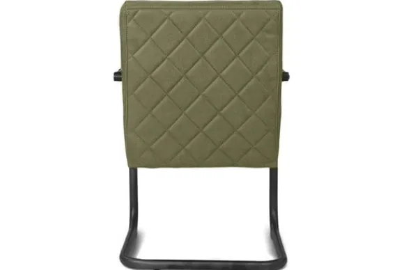 Eetkamerstoel Civo NI 0340 Groen van het merk Tower Living is beschikbaar in drie kleuren: antraciet, cognac en groen. Deze stoel is bekleed met de Bull 59 en heeft zwart metalen poten. De poten lopen door tot armleuningen die voor een deel bekleed zijn. In de rugleuning zit een wieberstiksel en de zitting is glad.