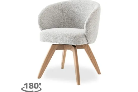 Eetkamerstoel Brescia AN 0021 van het merk Tower Living straalt een tijdloze elegantie uit met zijn verfijnde vorm en zachte, grijze bekleding. De gebogen rugleuning en comfortabele zitting zijn bekleed met een stijlvolle, grove stof die een subtiele textuur toevoegt en warmte brengt in elke ruimte. De combinatie met de schuine, eikenhouten poten geeft de stoel een natuurlijke en moderne uitstraling. Dankzij het slimme design is Brescia bovendien 180 graden draaibaar, wat zorgt voor extra bewegingsvrijheid en functionaliteit zonder in te leveren op stijl.