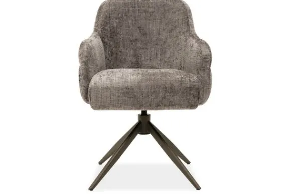 Eetkamerstoel Neptunus Cremona 24 van het merk Veyron is een draaibare eetkamerstoel met een warme en comfortabele uitstraling. De zitting is bekleed met een bruin grijze stof met een subtiele structuur, wat zorgt voor een rustige en stijlvolle sfeer aan tafel.