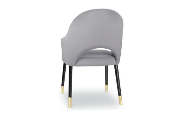 Eetkamerstoel Seine van het merk Vie Chic is beschikbaar in alle kleuren en in verschillende materiaalsoorten zoals stof, velvet en microvezel. Je kunt kiezen uit verschillende pootkleuren. Een goud detail onderaan de poten zorgt voor een extra detail. De Seine heeft een opening onderin de rugleuning en is voorzien van armleuningen.