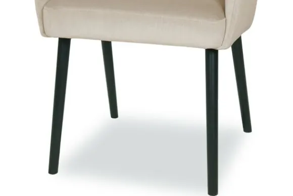 Deze eetkamerstoel wordt standaard uitgevoerd met houten poten in de kleur zwart.