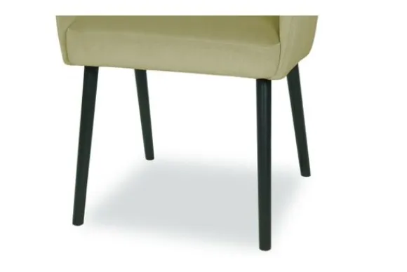 Deze eetkamerstoel wordt standaard uitgevoerd met houten poten in de kleur zwart.