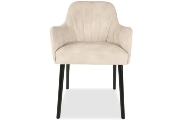 Eetkamerstoel Juif II van het merk Vie Chic is verkrijgbaar in alle kleuren en in verschillende materiaalsoorten zoals stof, velvet en microvezel. Je kunt kiezen uit verschillende pootkleuren. Een goud detail onderaan de poten is optioneel. De stoel is voorzien van armleuningen en verticale stiksels in de rugleuning.
