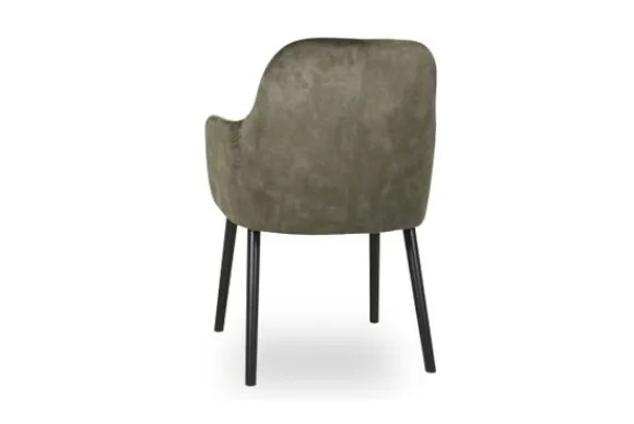Eetkamerstoel Juif II van het merk Vie Chic is beschikbaar in alle kleuren en in verschillende materiaalsoorten zoals stof, velvet en microvezel. Je kunt kiezen uit verschillende pootkleuren. Een goud detail onderaan de poten is optioneel. De Juif is voorzien van armleuningen en verticale stiksels in de rugleuning.