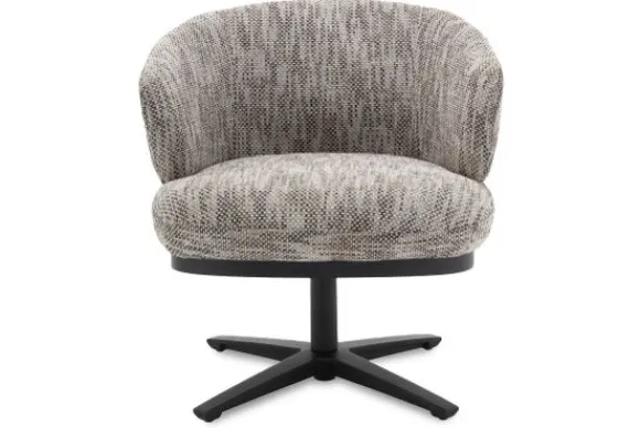 Stoel Perca AI 0421 van het merk Tower Living is een elegant statement voor het moderne interieur. De luchtige mix van wit- en grijstonen in de grof geweven bekleding creëert een speels lijnenspel dat subtiel met het licht danst, alsof de stof zelf tot leven komt. De ronde vormgeving nodigt uit tot ontspanning, terwijl het zwarte, draaibare onderstel een hedendaags en functioneel karakter toevoegt – perfect voor flexibele opstellingen en open woonruimtes.