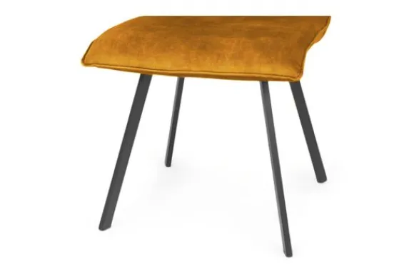 Eetkamerstoel Jussie van het merk Titan Design is beschikbaar in alle kleuren en in verschillende materiaalsoorten zoals stof, velvet en rundleder. De Jussie stoel is beschikbaar in diverse uitvoeringen. Deze Jussie heeft geen armleuningen en zwart metalen poten, viltdoppen zijn optioneel. De stoel is afgewerkt met een bies.