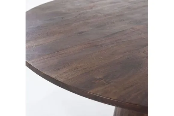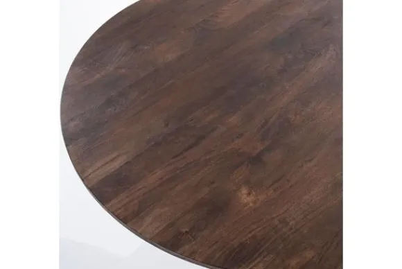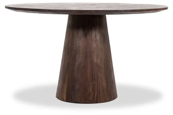 Eettafel Aron brown 95656 is vervaardigd uit mangohout met een warme, bruine geverfde afwerking. Het blad loopt stijlvol taps af en rust op een kegelvormige poot van 50 cm doorsnede.